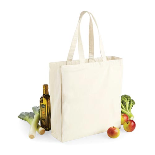 Die Canvas Classic Shopper mit Boden- und Seitenfalte W108 ist ein hochwertiger Shopper mit Seitenfalte. Hergestellt aus Baumwoll-Canvas (270 gsm), bietet er einen robusten und langlebigen Träger. Dank Siebdruck kann die Tasche kostengünstig personalisiert werden.