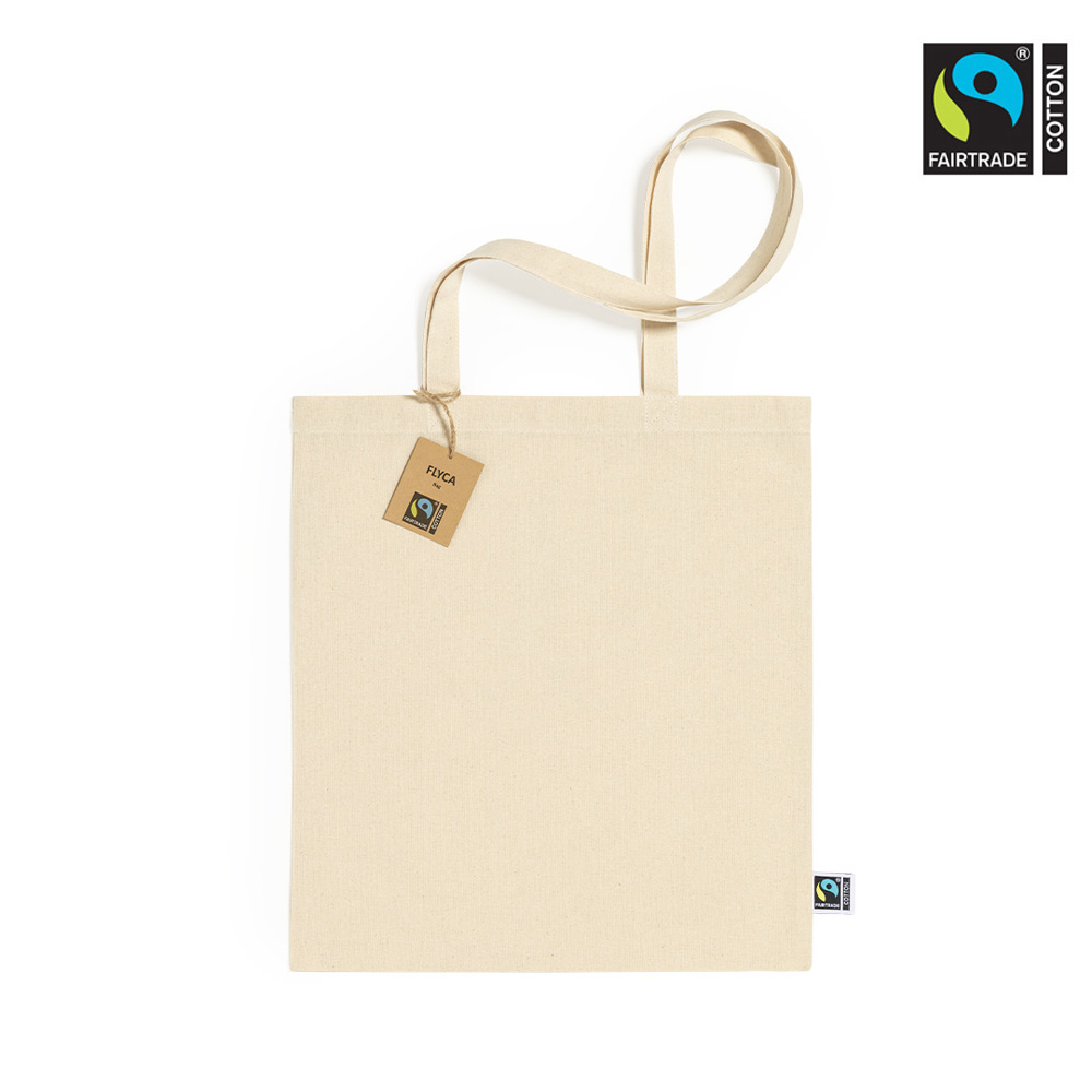 Die Premium Fairtrade Baumwolltasche Flyca ist eine hochwertige und umweltfreundliche Werbetasche aus 100 % Fairtrade-zertifizierter Baumwolle. Mit einer Materialstärke von ca. 180 gsm bietet sie eine robuste Premium-Qualität und dient als langlebiger Begleiter im Alltag. Ein besonderes Qualitätsmerkmal ist das seitlich eingenähte Fairtrade-Label sowie der Anhänger aus recyceltem Karton, die den nachhaltigen Charakter dieser Tasche unterstreichen.