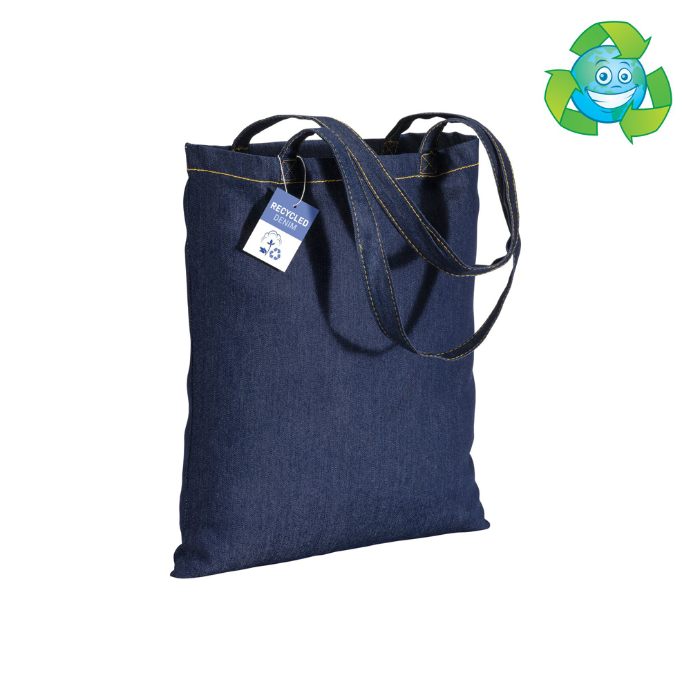 Startseite > Werbetaschen > Recycling-Baumwolltaschen > Kollektion > Recycled Denim Stofftasche Zirl 180gsm lange Henkel
